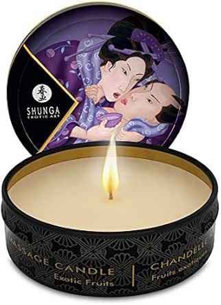 Combina la suavidad de un dulce masaje con un ambiente íntimo y sensual.Esta vela de masaje Shunga te encenderá tus sentidos con los aromas sensuales y te deleitará además con un cálido aceite para masajear a tu pareja.Enciende la mecha de la candela y deja que arda durante veinte minutos, luego vierte la cera caliente y viertela encima de la piel... Aroma a Frutas Exóticas Contenido 30 ml.Cosmetica y aromaterapia al placer de tus sentidos!Shunga es Líder mundia en cosmetica Erotica, sus ingredientes naturales fusionado con principios activos logran un gran resultadoEntrar en el mundo erótico de Shunga es viajar al pasado. Traducido literalmente, Shunga significa ‘imagen de primavera’, una manera delicada de decir ‘relaciones sexuales’ entre personas.Esta palabra se usaba para designar las pinturas eróticas japonesas del siglo XVI, XVII y XVIII, un tipo llamado ukiyo-e, que no eran otra cosa que obras sobre madera o pergamino con escenas sensuales y episodios de amor carnal, siempre elaborados con mucho cuidado y buen gusto.El arte Shunga, aunque oculto durante siglos, marcó el principio de la industria pornográfica para la clase media nipona y sirvió durante generaciones como enseñanza para los hijos y las hijas de muchas familias.